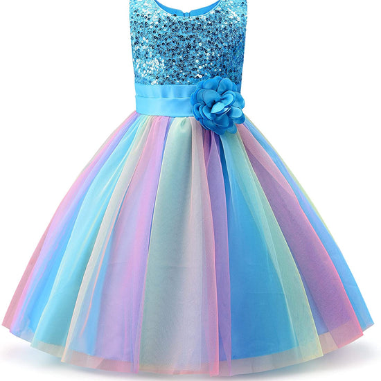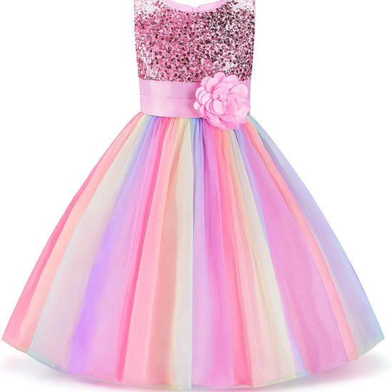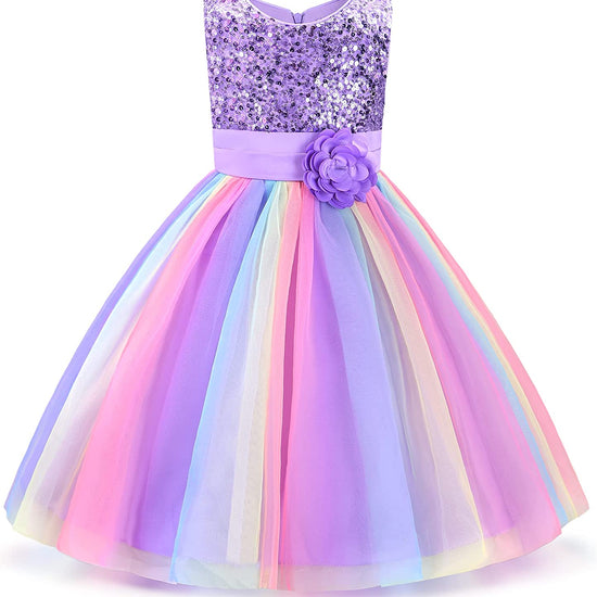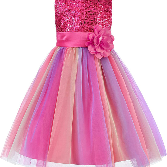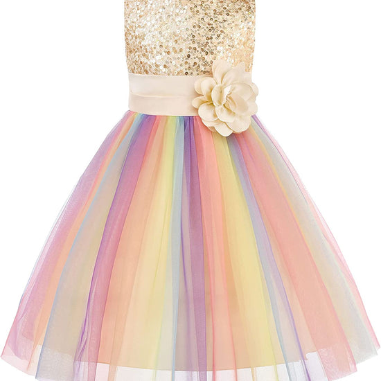 この愛らしいノースリーブのスパンコールのレインボードレスは、小さな女の子への素晴らしい贈り物です。