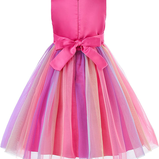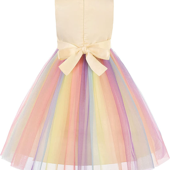 色: カラフルなレインボーチュールがこのドレスをより可愛くします。