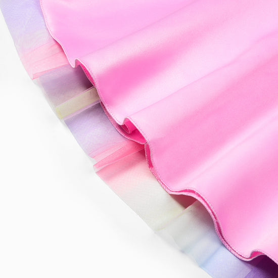- レインボーチュールスカート:このスカートは、柔らかいパステルカラーのカラフルなチュールを重ねて作られており、夢のようなレインボー効果を生み出し、特別な機会に最適です。
