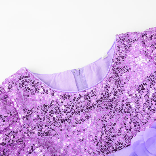 - キラキラ輝くスパンコールのボディス:ドレスの上部はキラキラ輝くスパンコールで飾られ、華やかさを添え、お子様が本物のプリンセスのような気分になります。