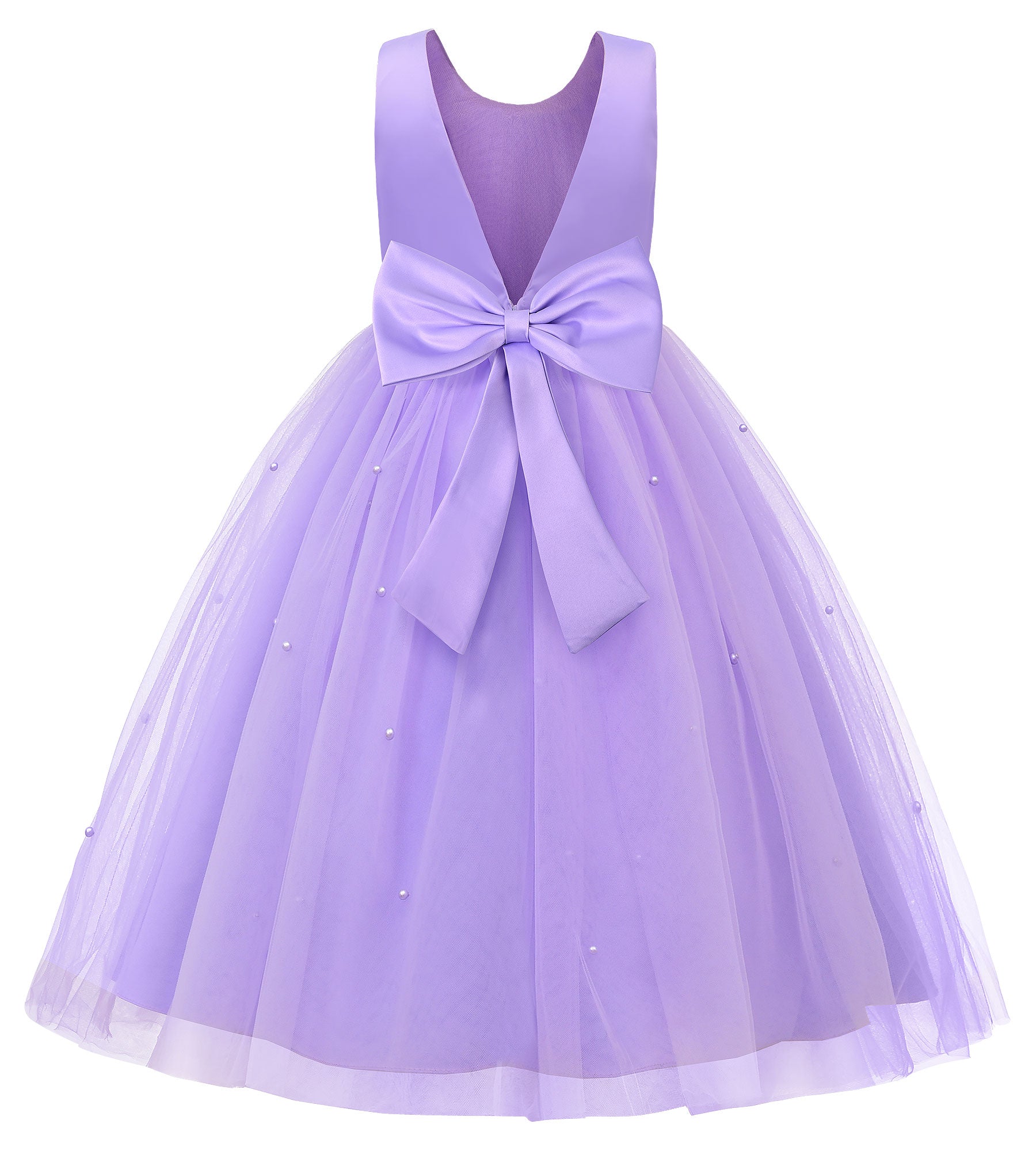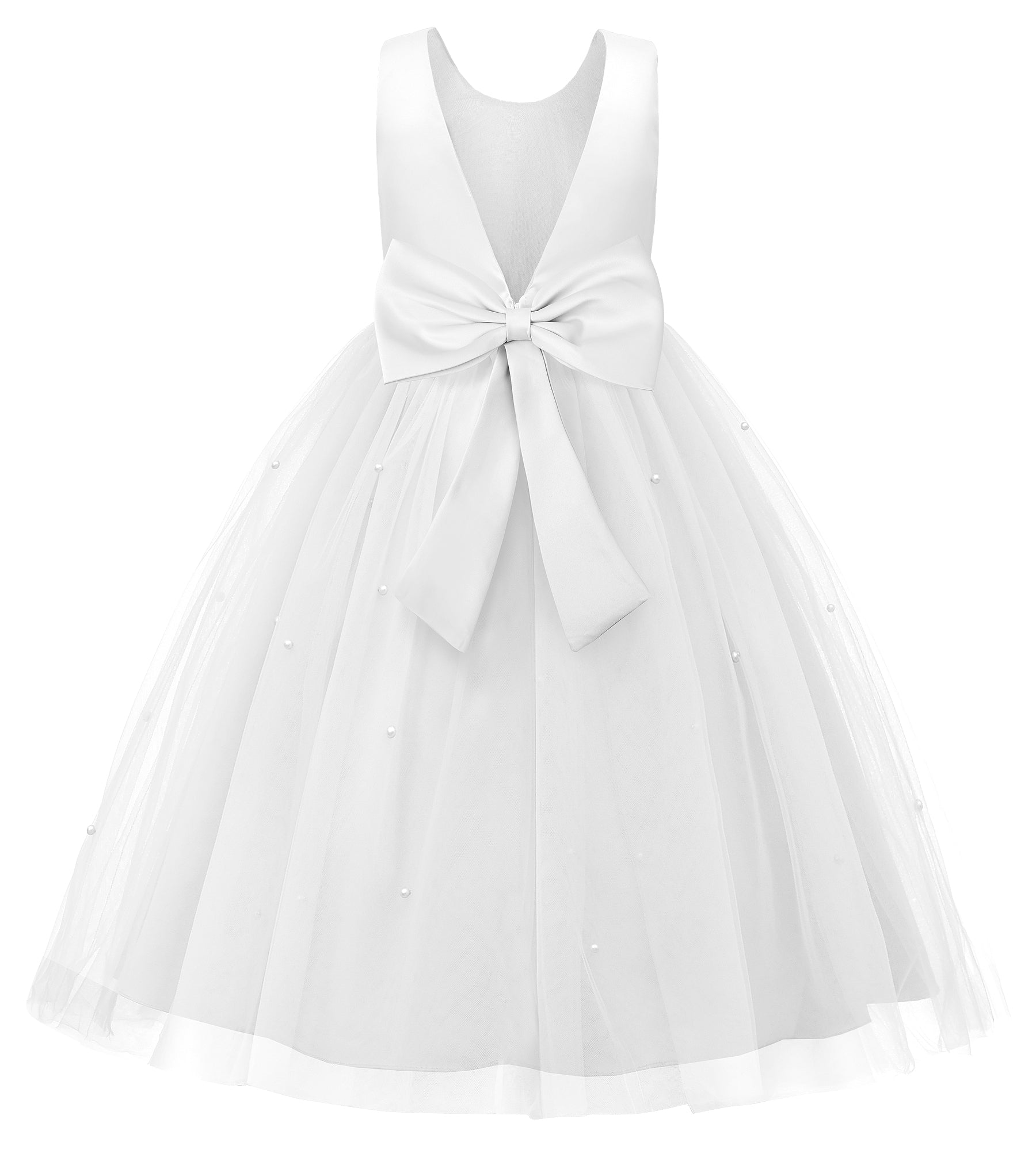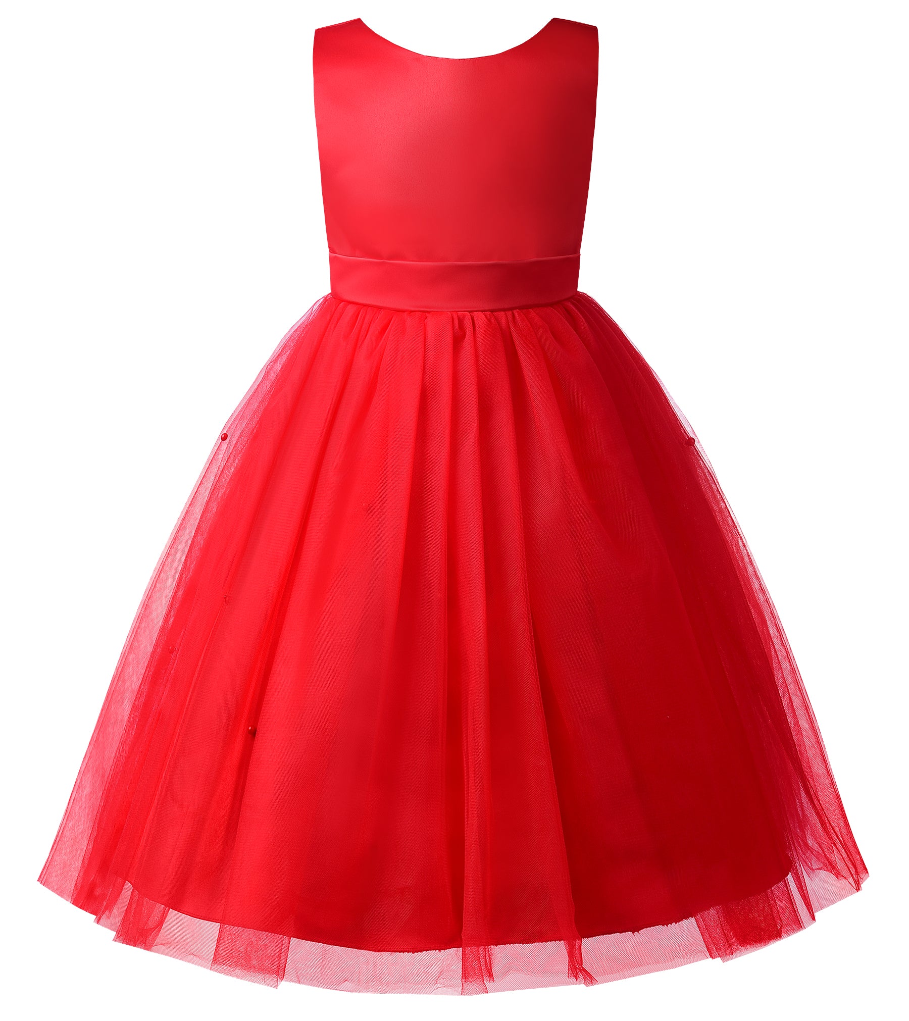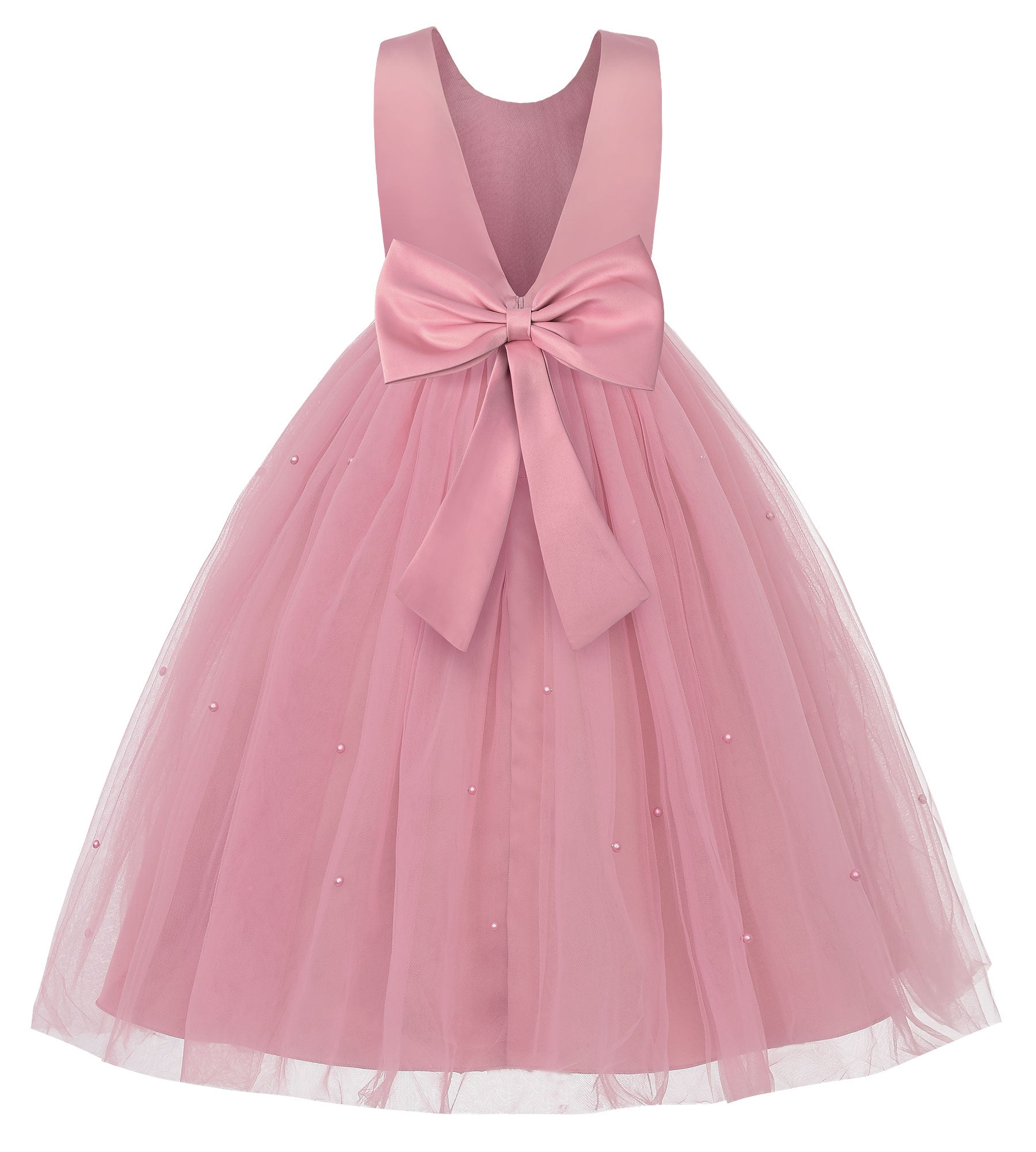 Flower Girl Dress Satin Ball Gown for Wedding Party with Bowknot