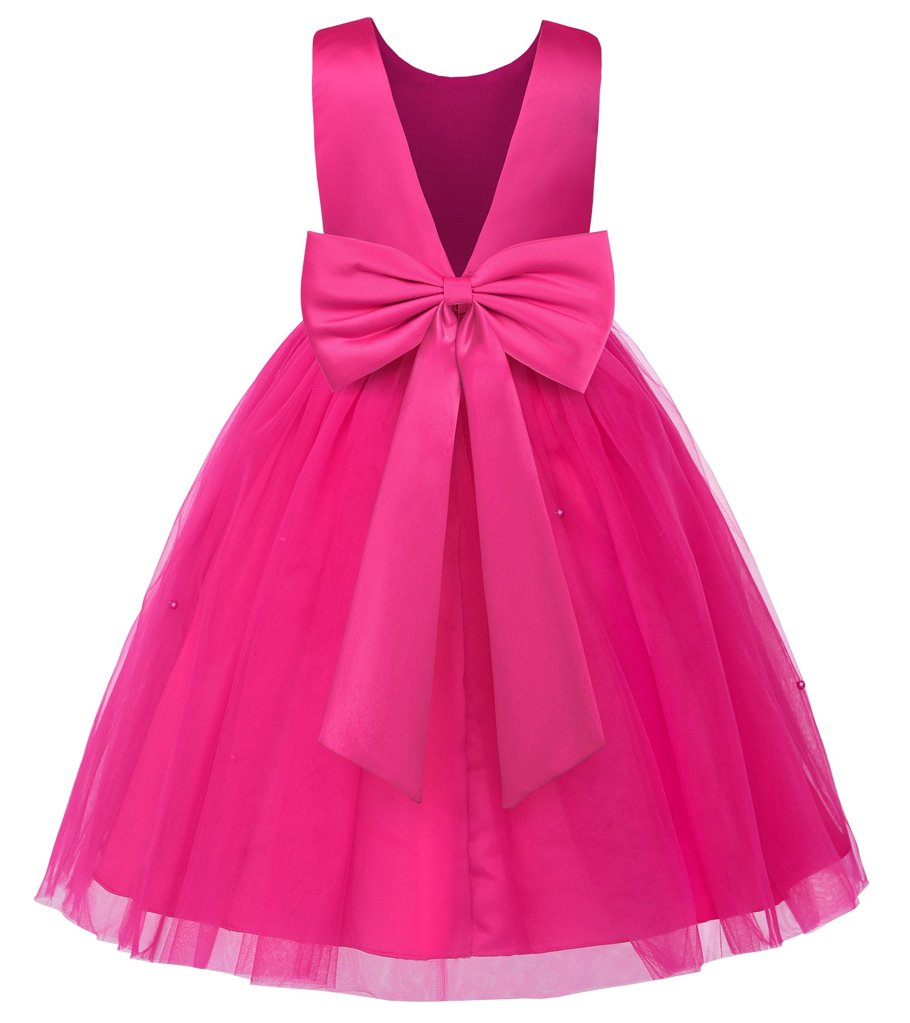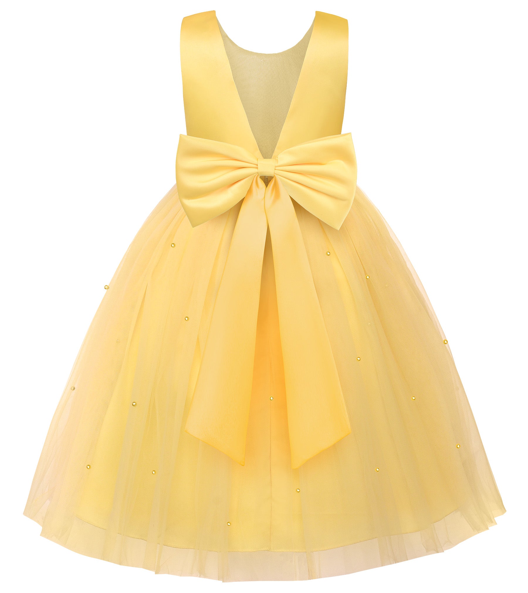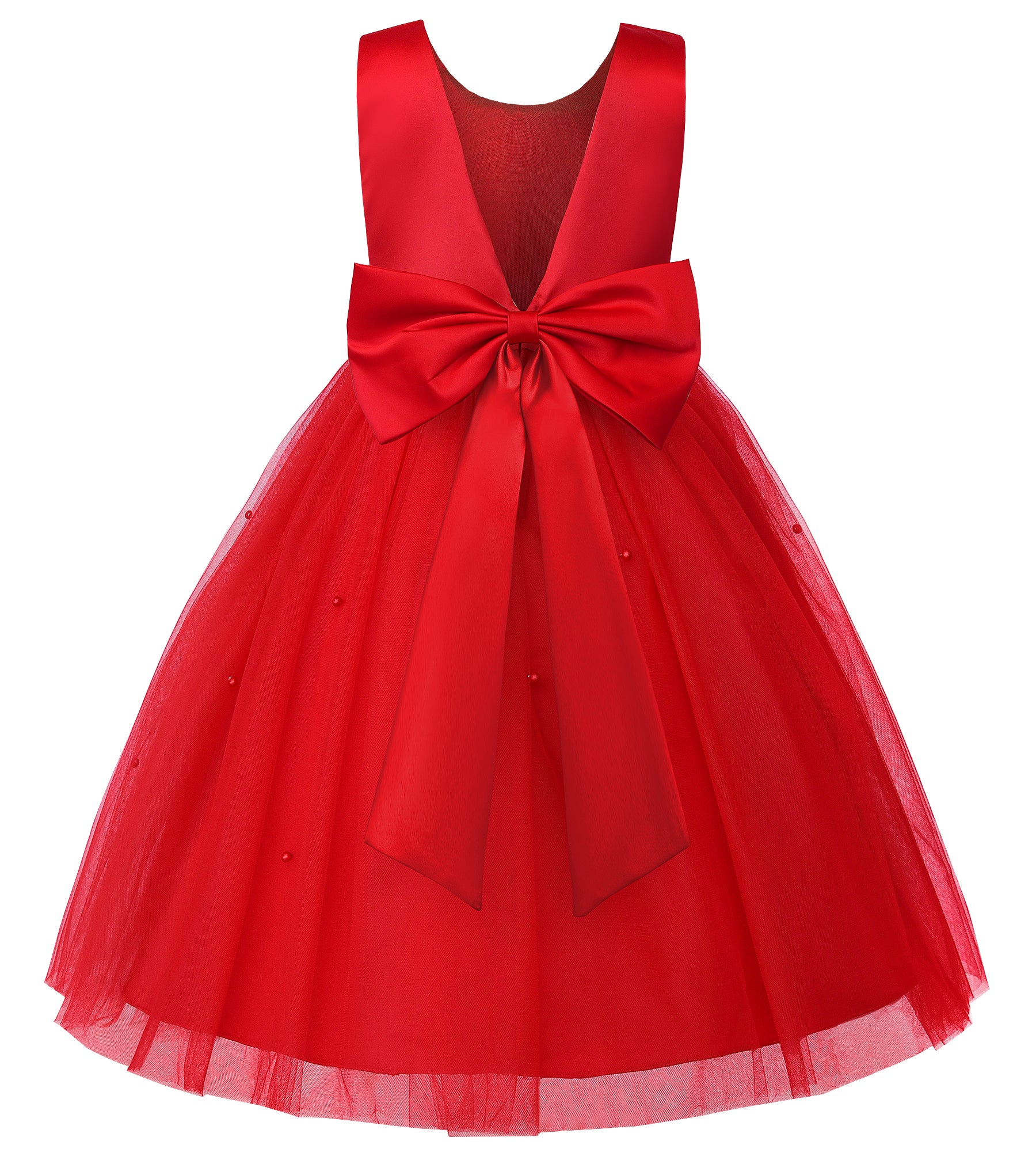 Flower Girl Dress Satin Ball Gown for Wedding Party with Bowknot