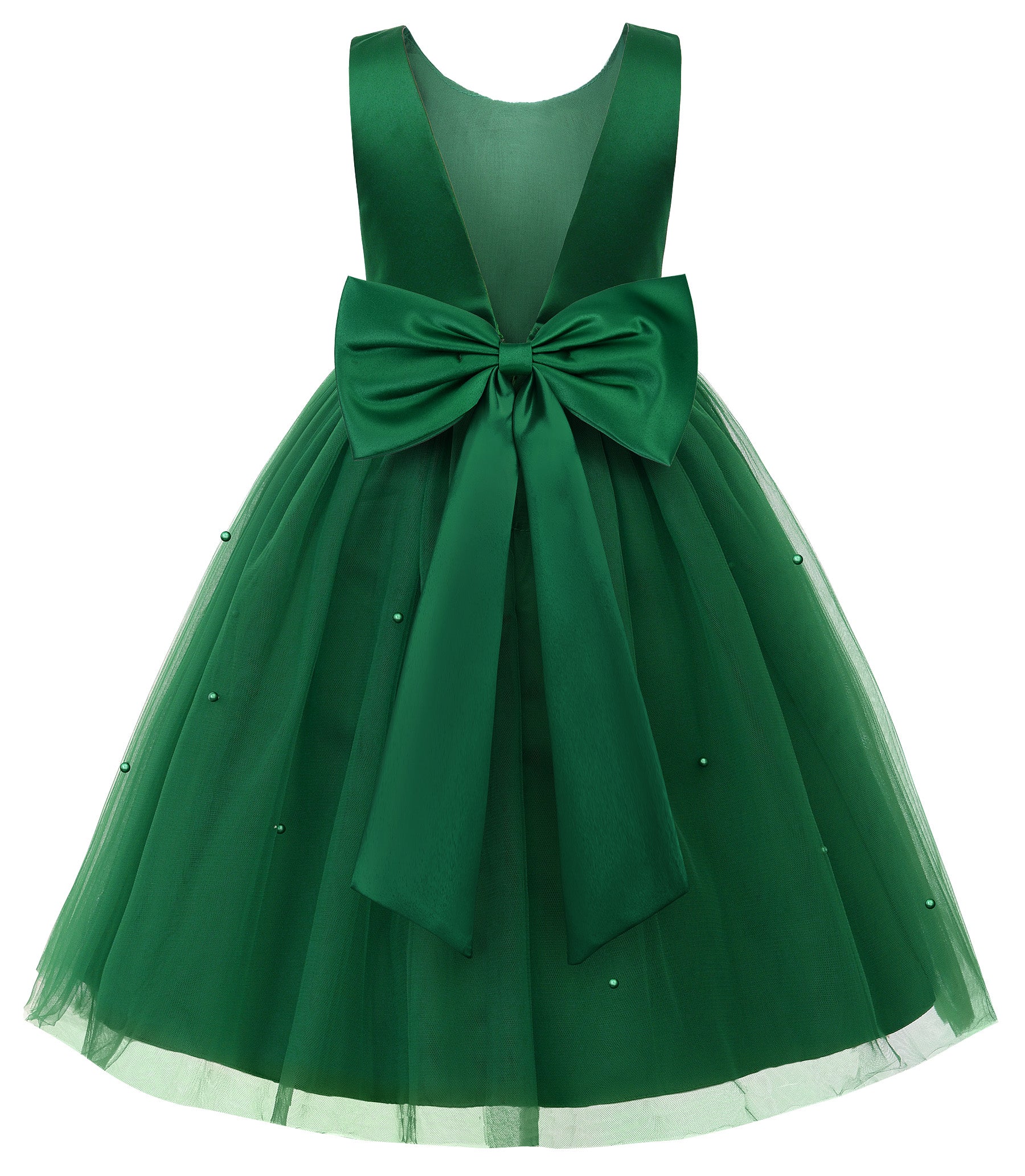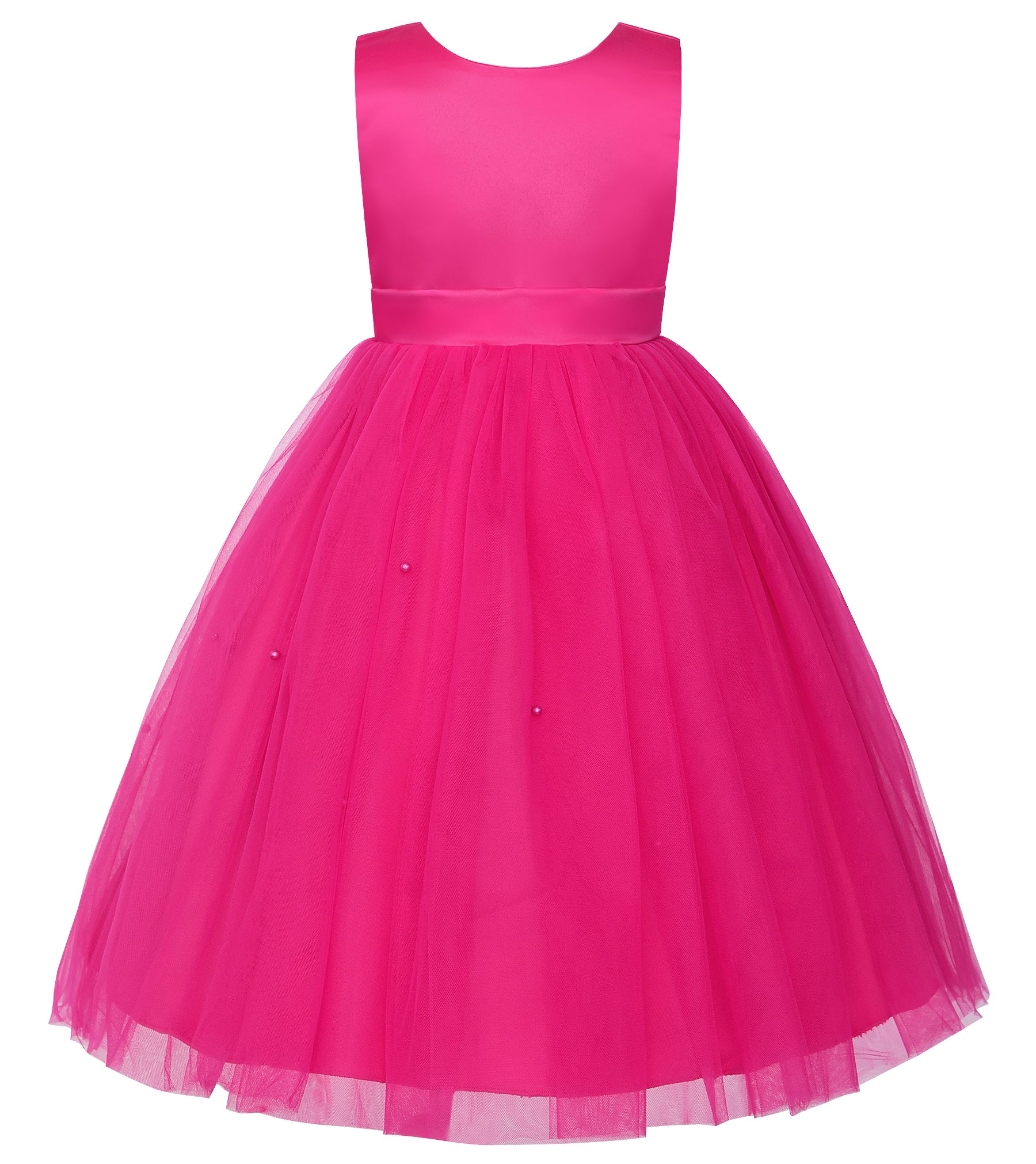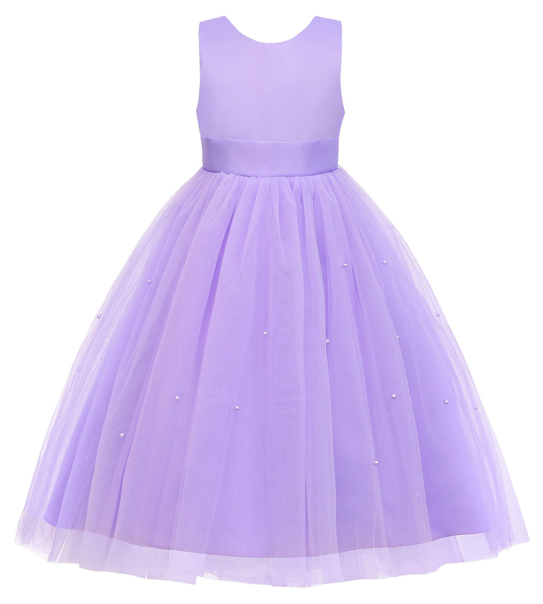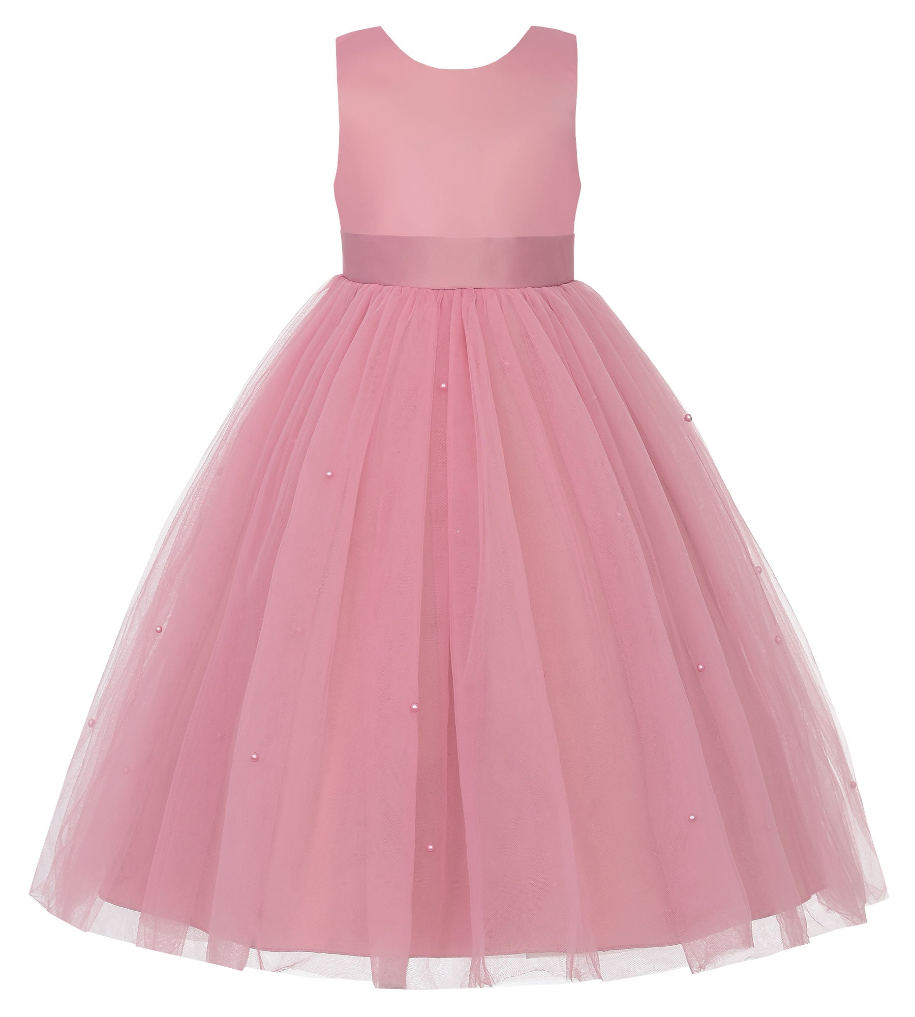 Flower Girl Dress Satin Ball Gown for Wedding Party with Bowknot