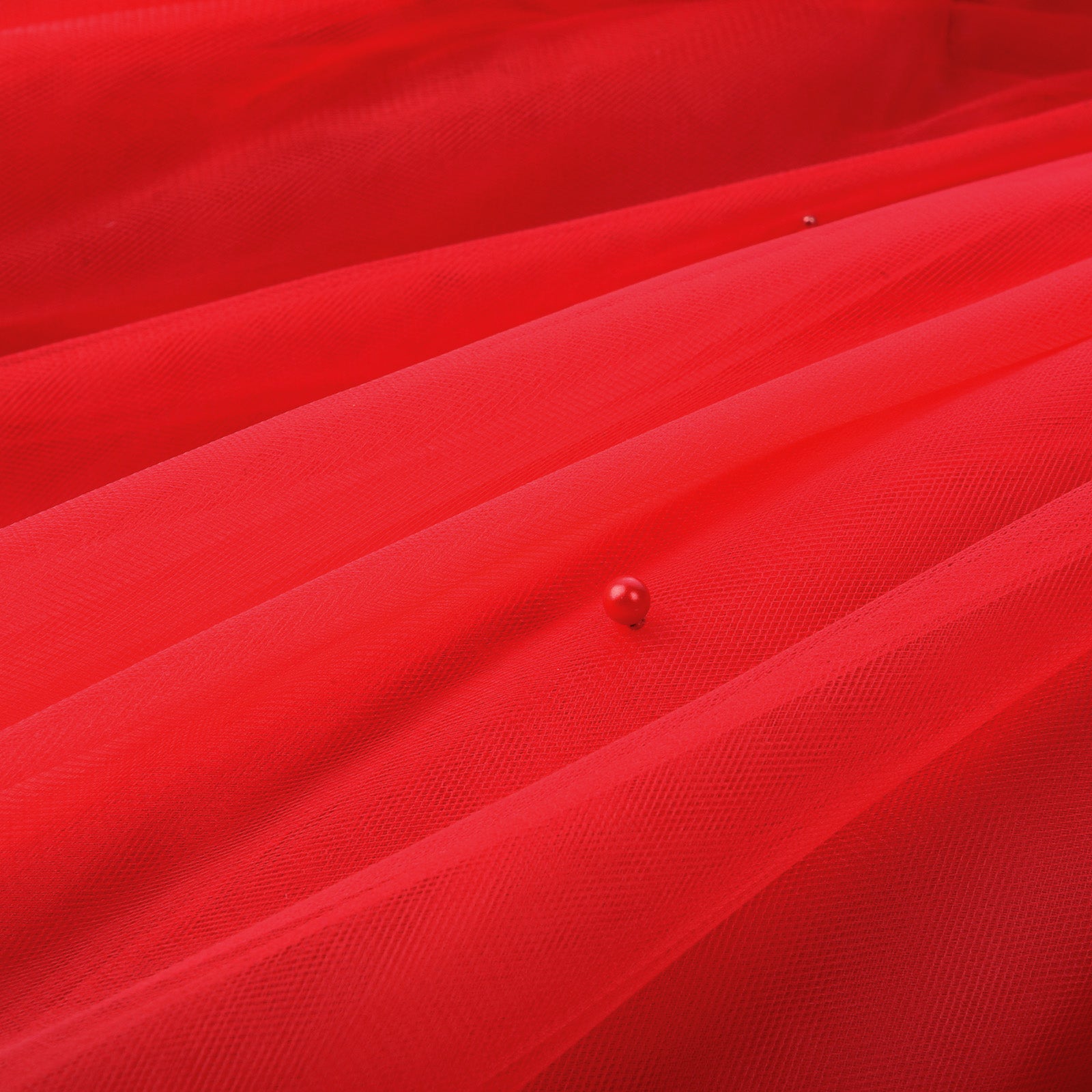 - Multi-layer tulle skirt embellished with pearls, with 100% cotton soft lining inside.
