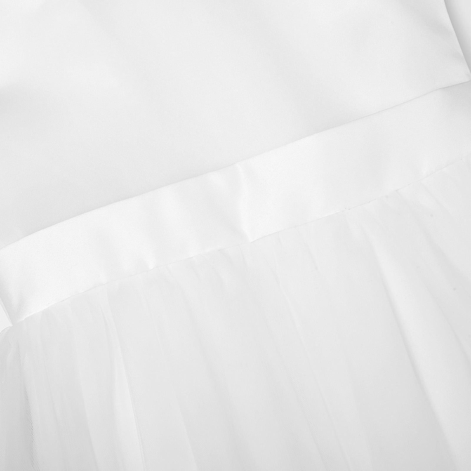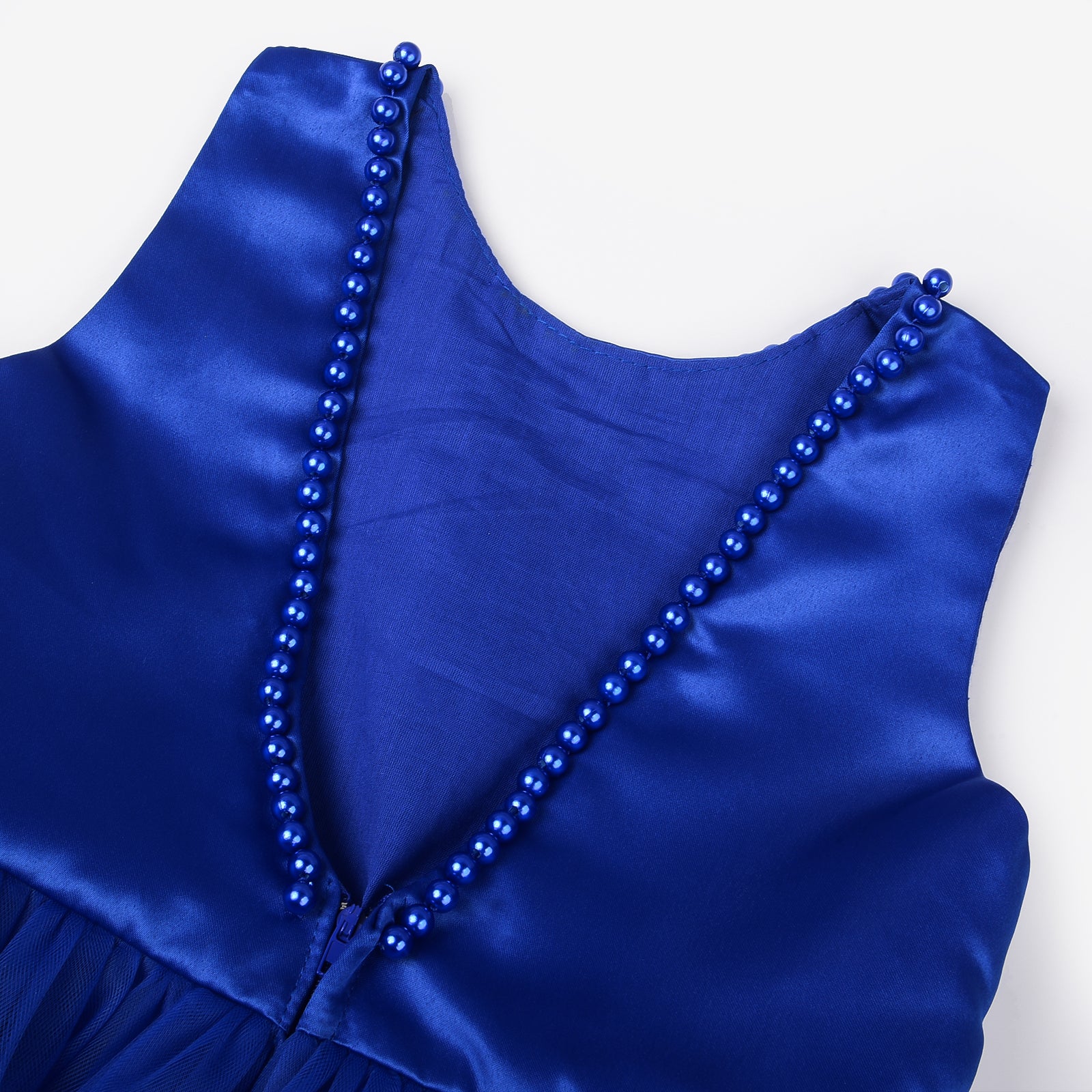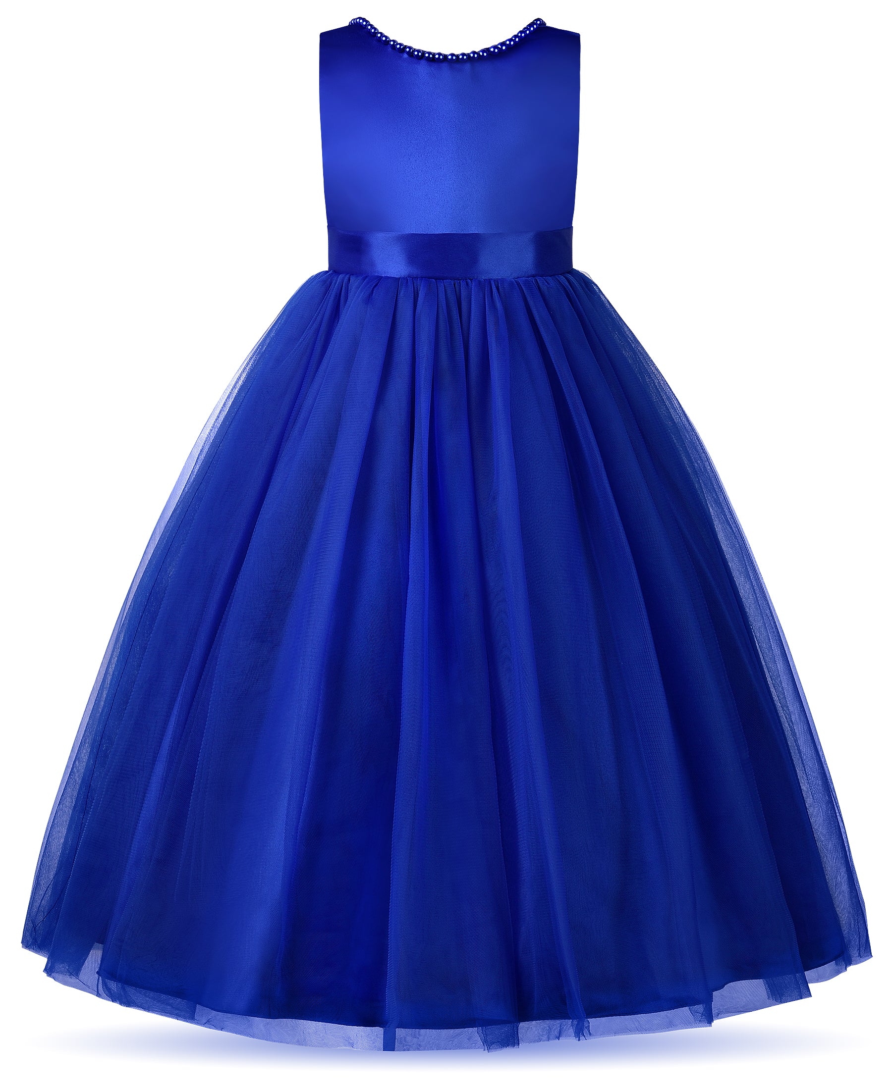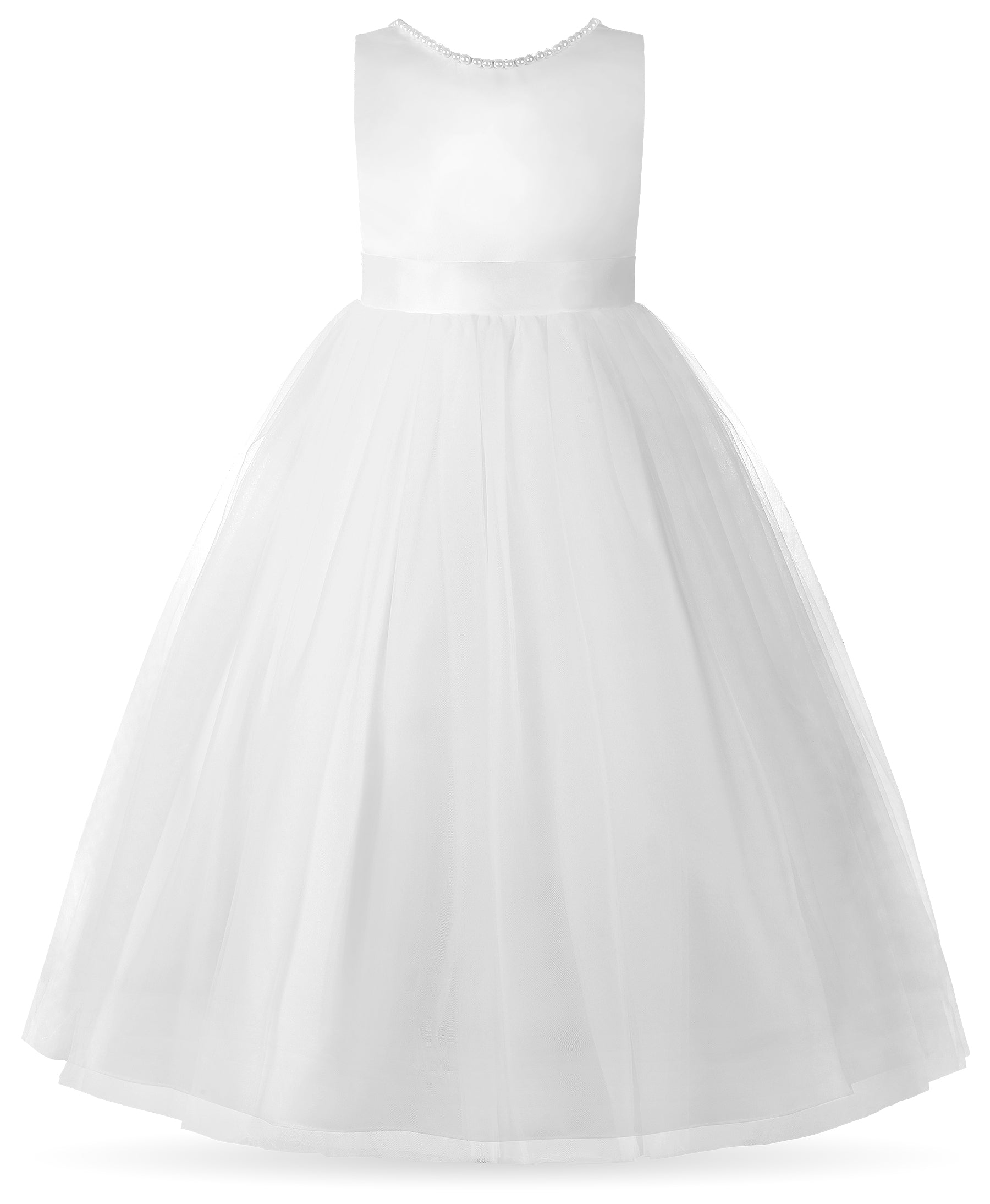 Flower Girl Pearls Dress V-Back Tulle Ball Gown Satin Prom with Bow-Knot for Wedding Pageant Birthday Party