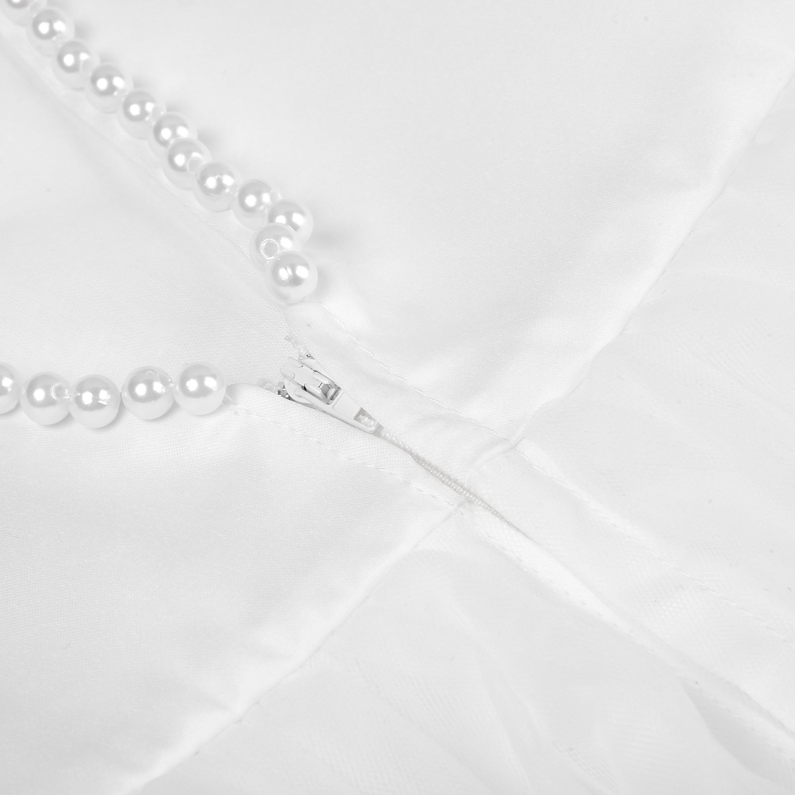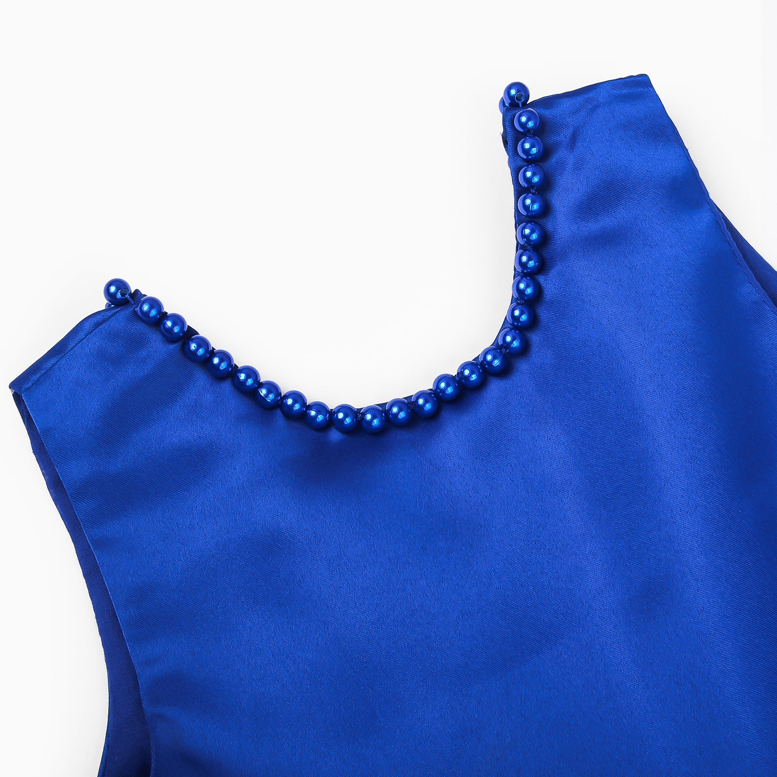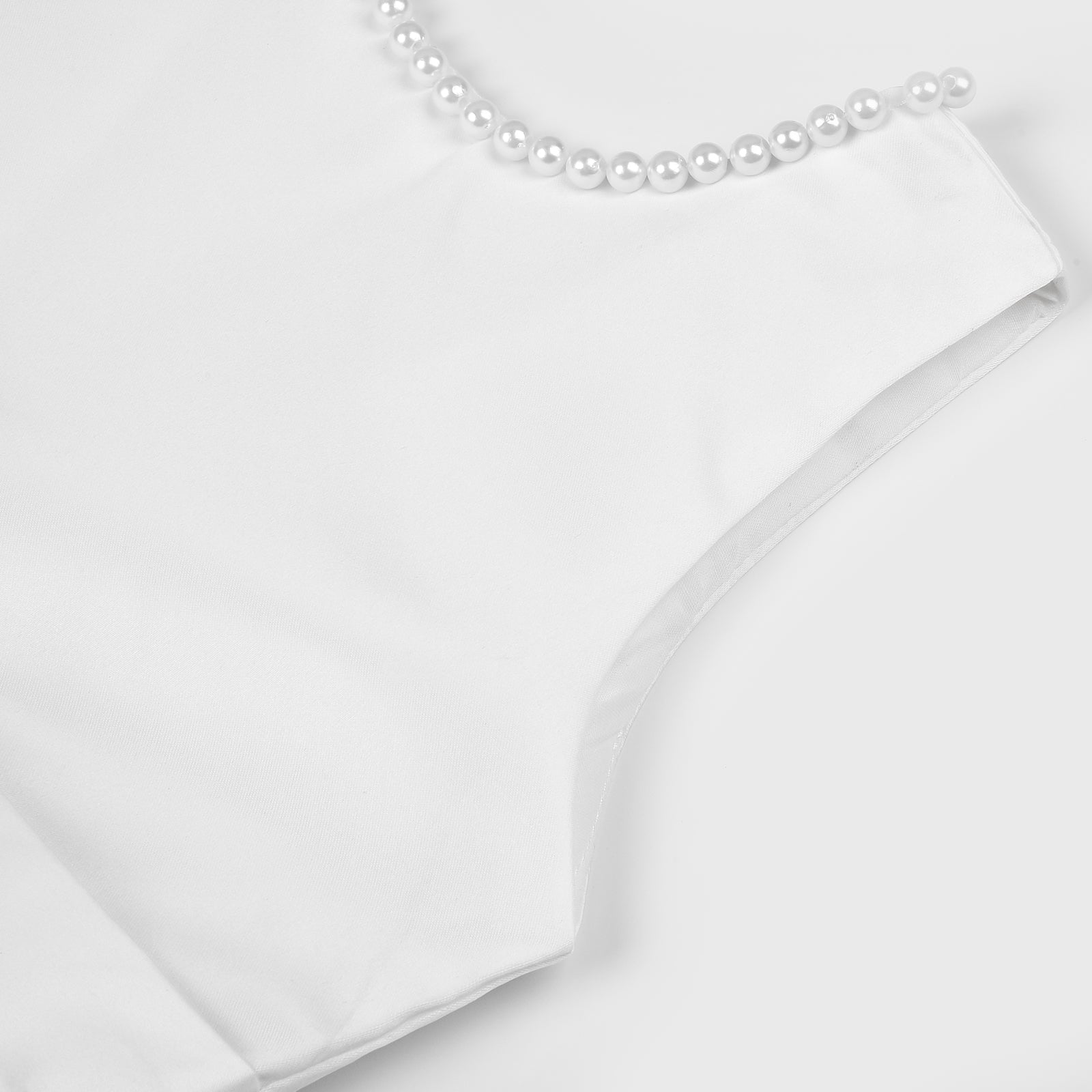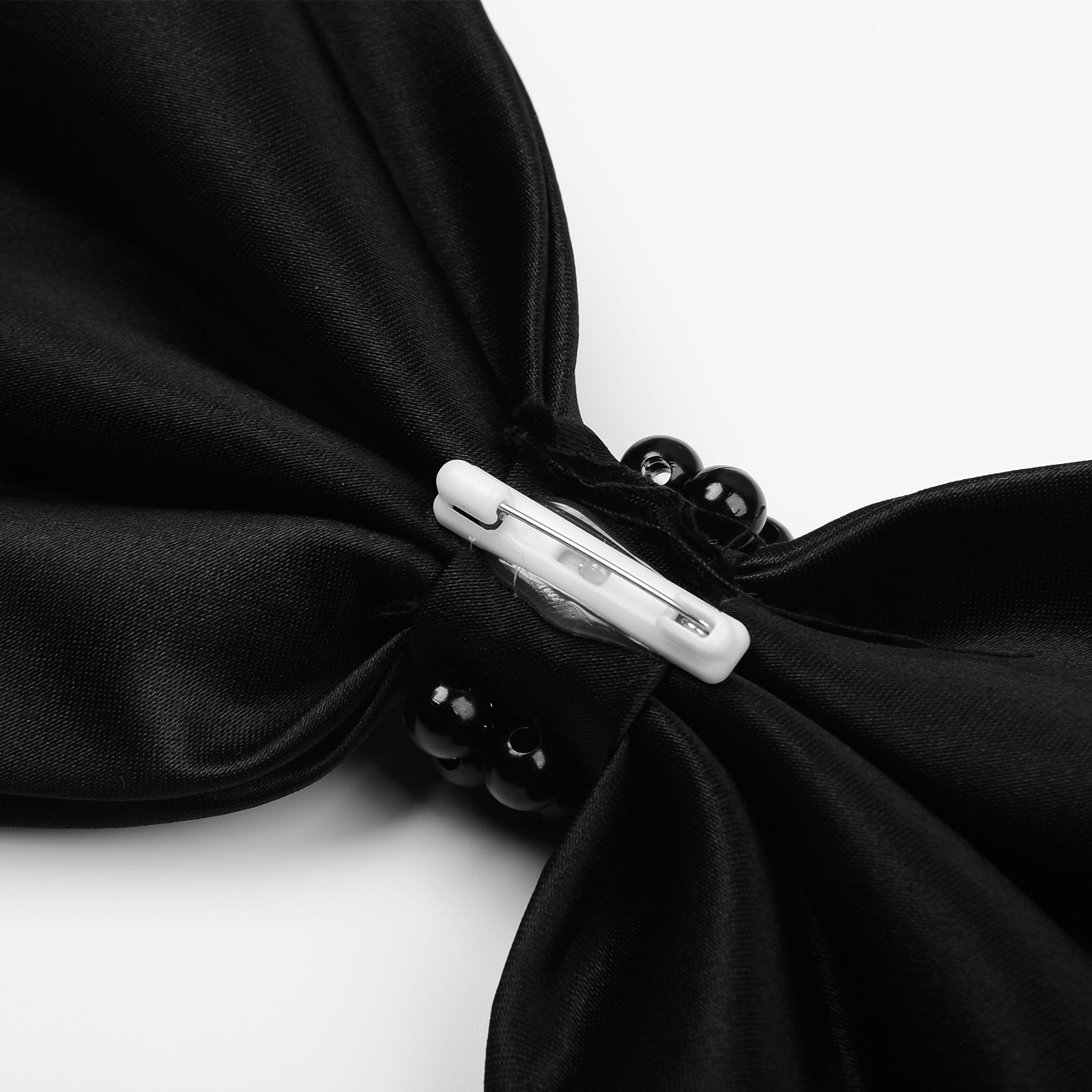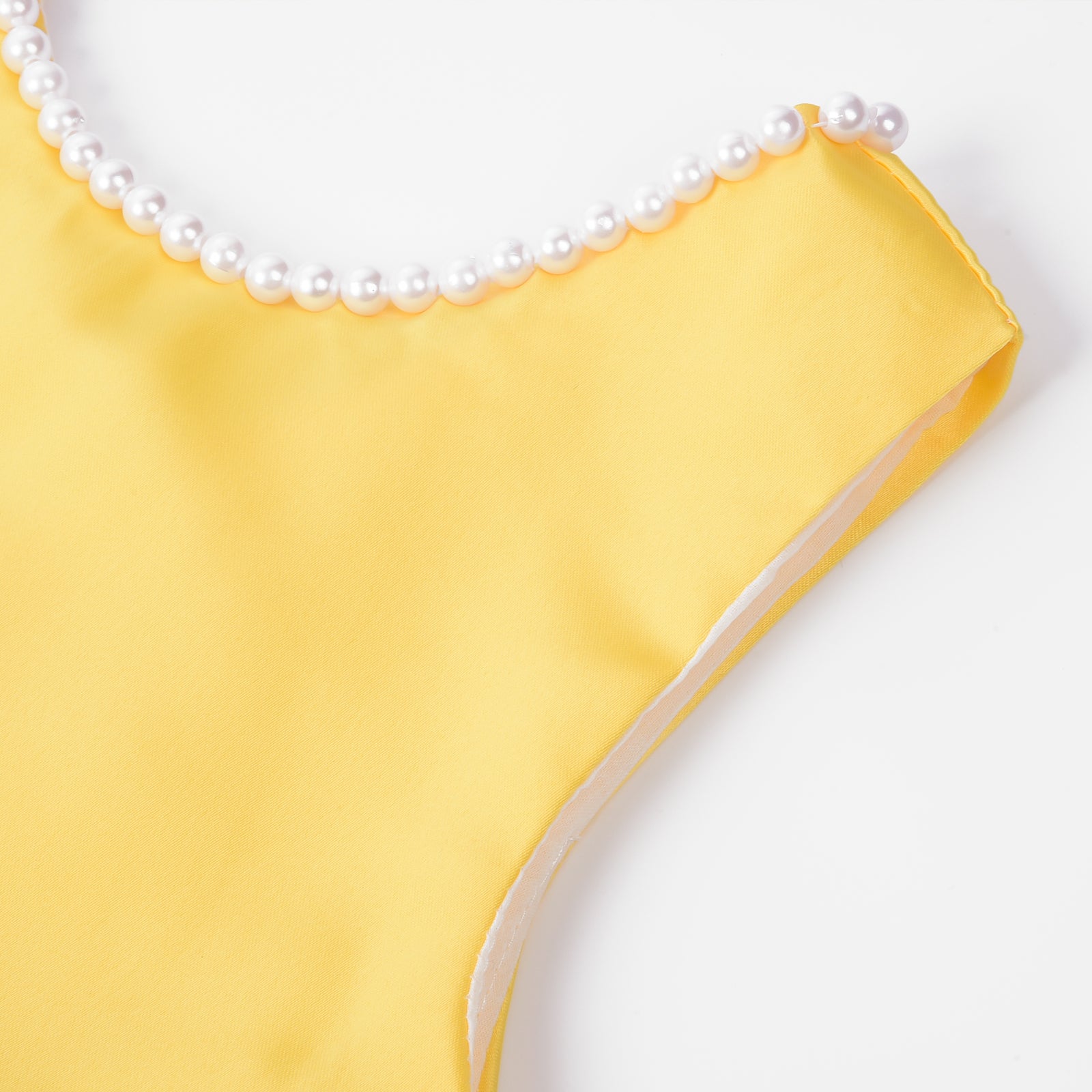 - Charming Details: The dress is adorned with a delicate pearl trim around the neckline and features a stylish deep V-back design with a large bow, adding a touch of sophistication and flair