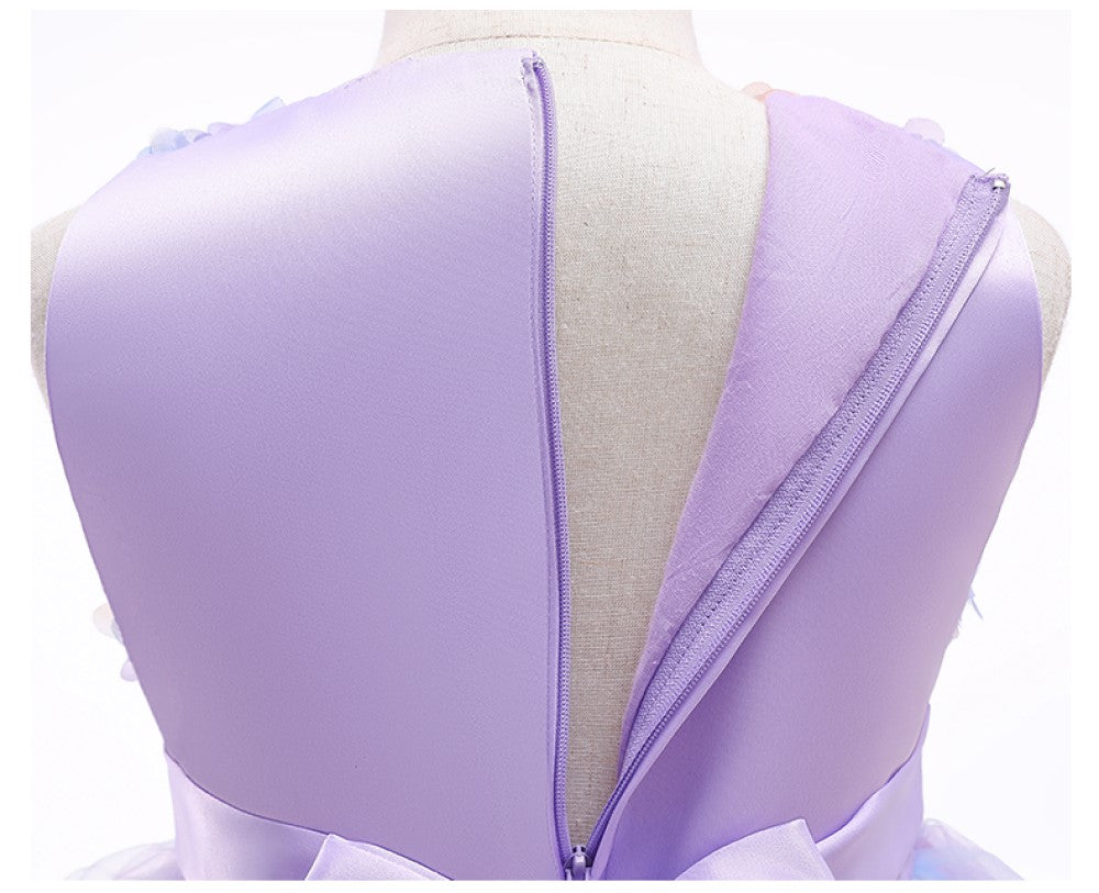 - Sleeveless round collar design with 3D tulle flowers on the bodice