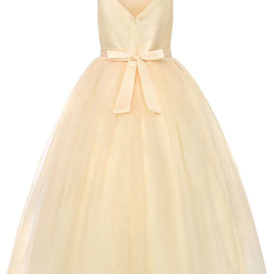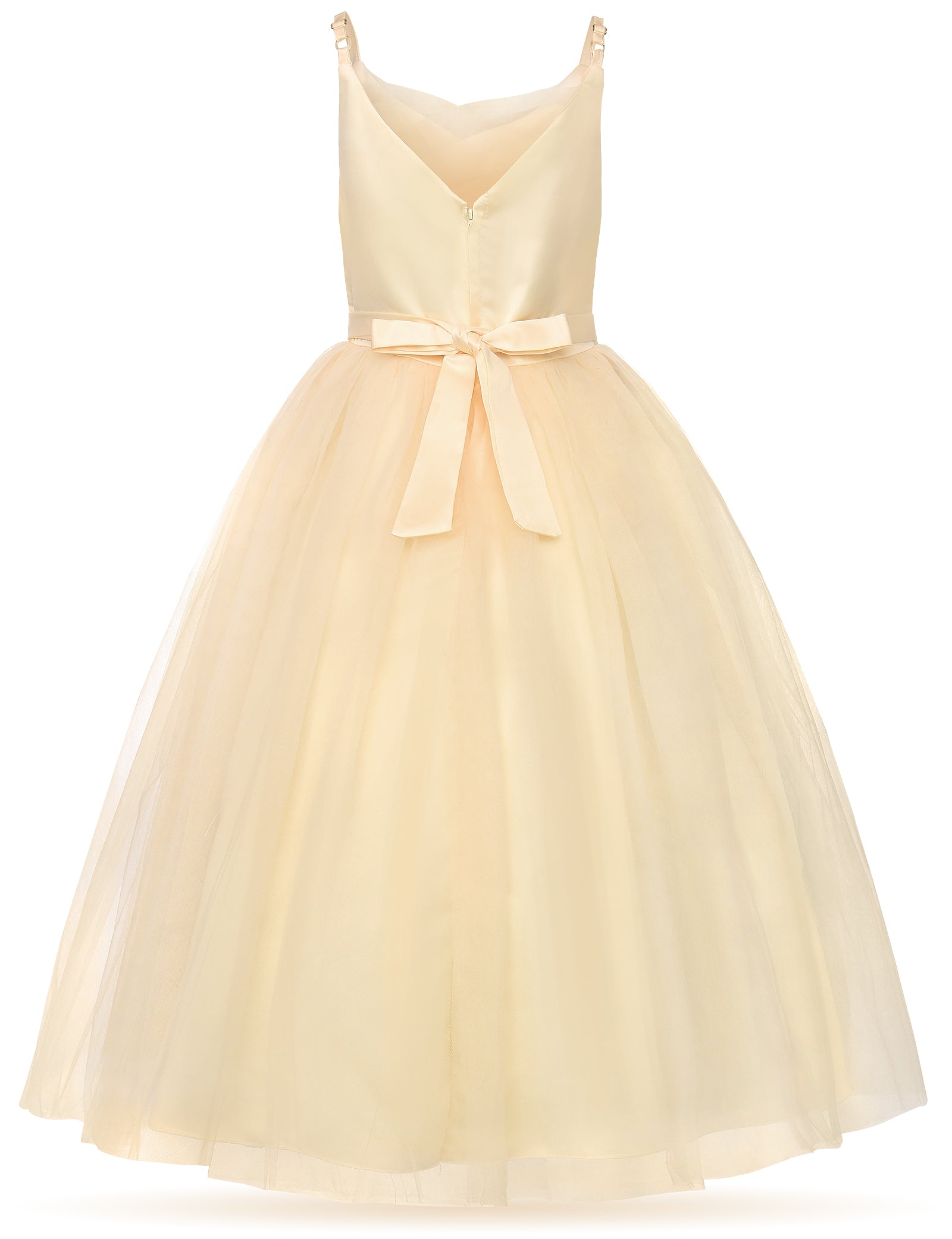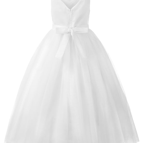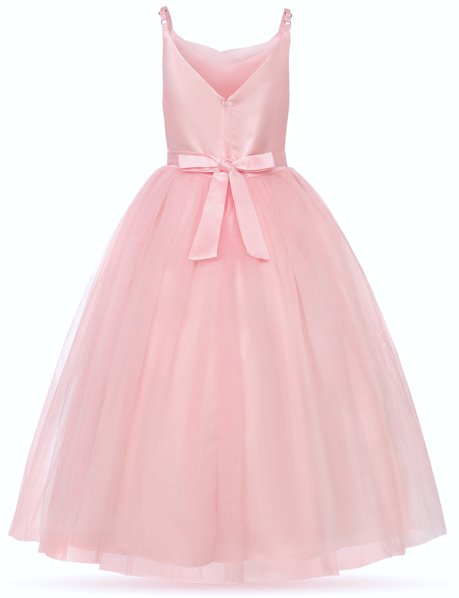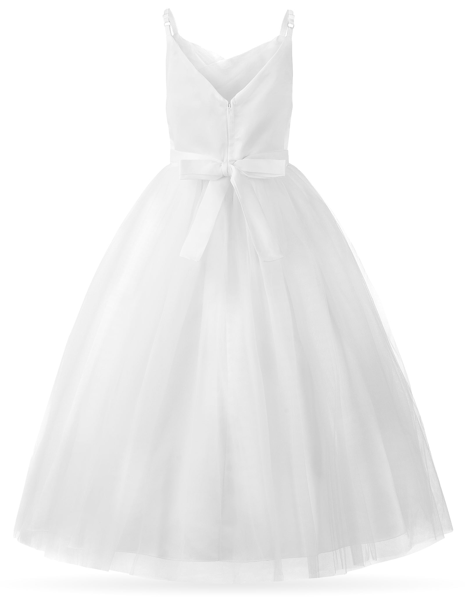 - Elegant Design: This girls' dress features a timeless tulle overlay and a flattering V-neck back design, perfect for any formal occasion.