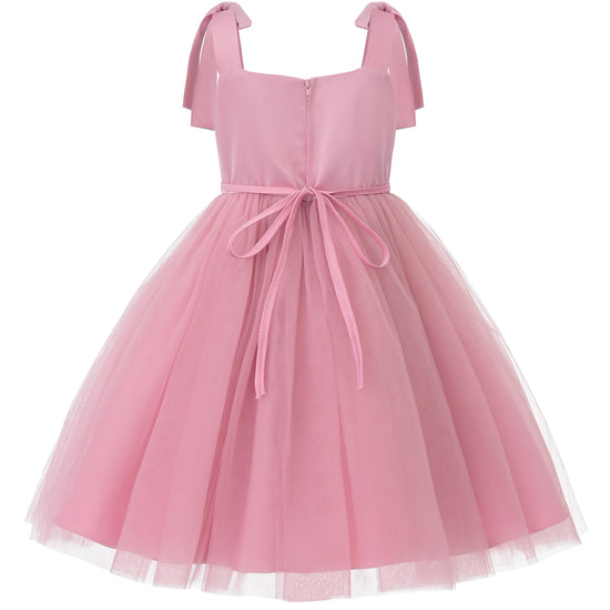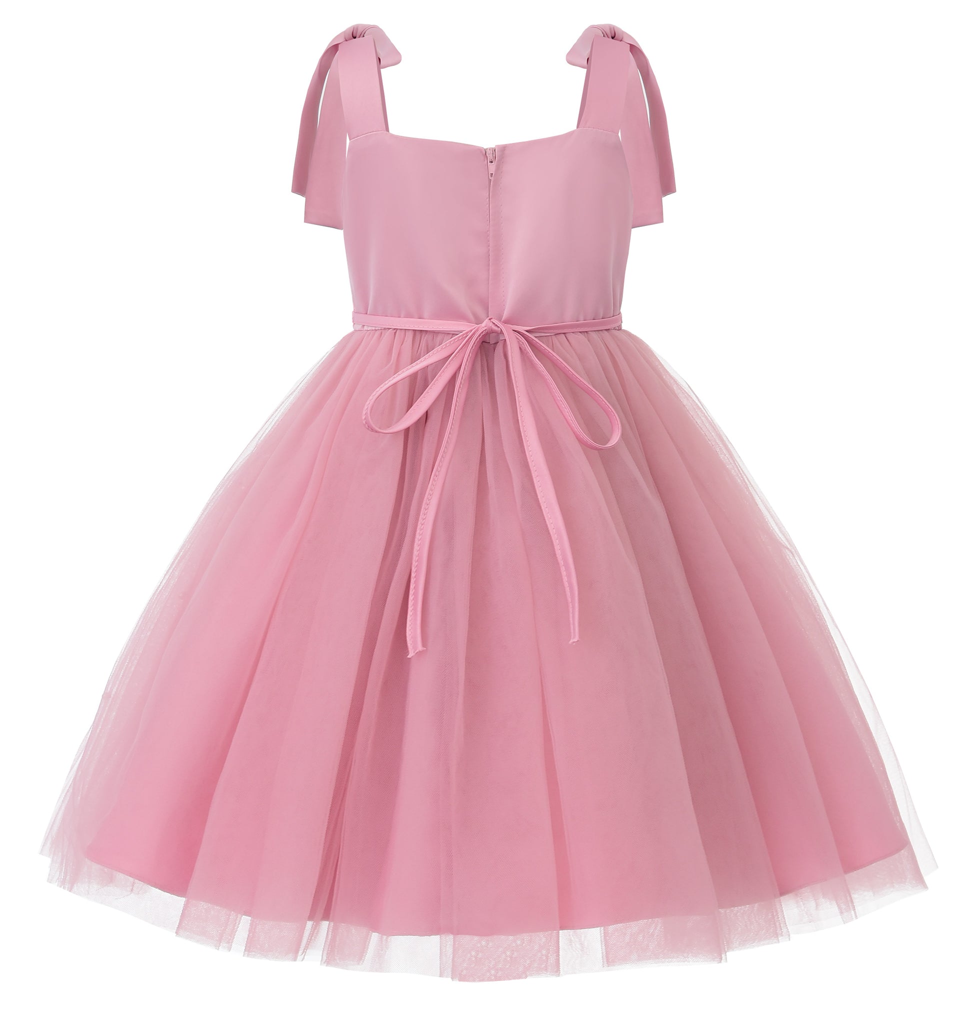 - Fixed Bow Shoulder Straps: The dress is designed with fixed bow shoulder straps that add a cute and playful touch, providing a secure and stylish fit for your little one