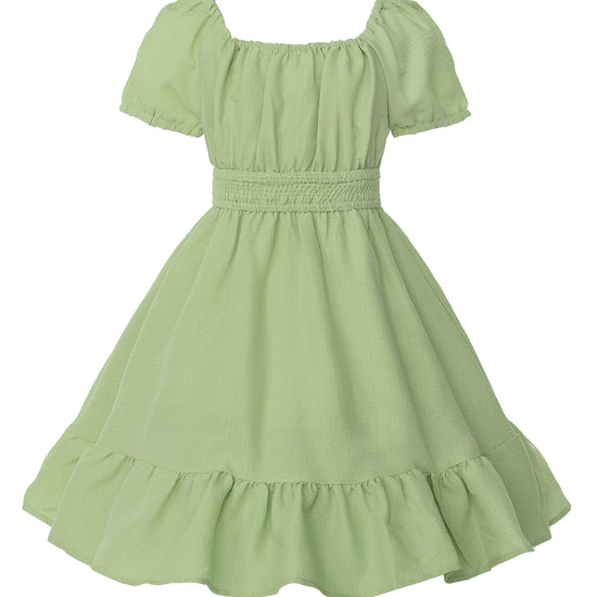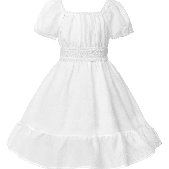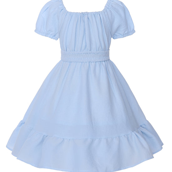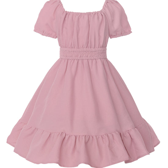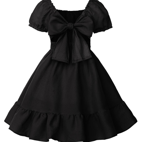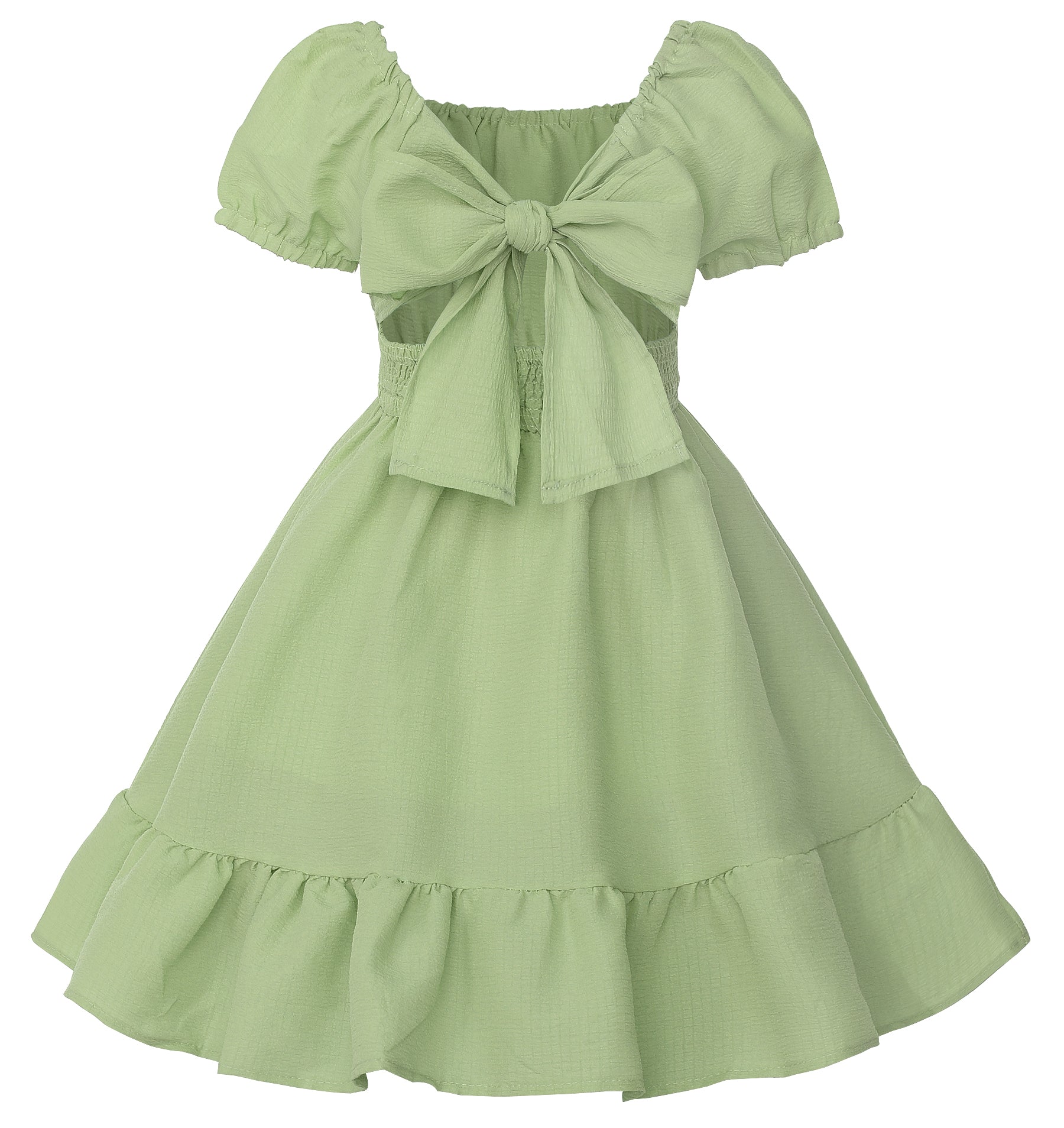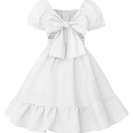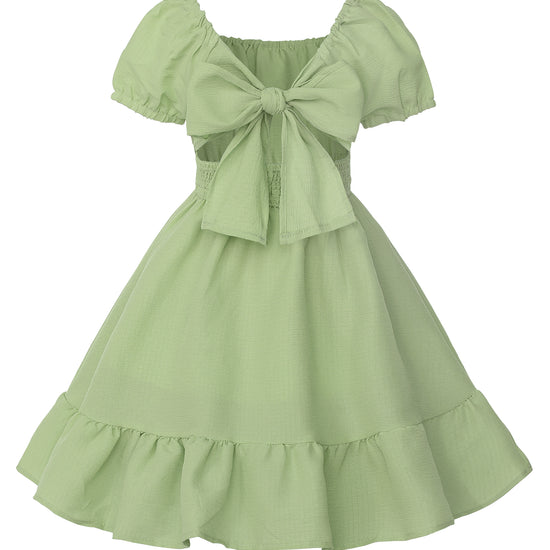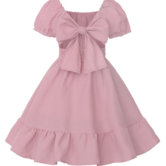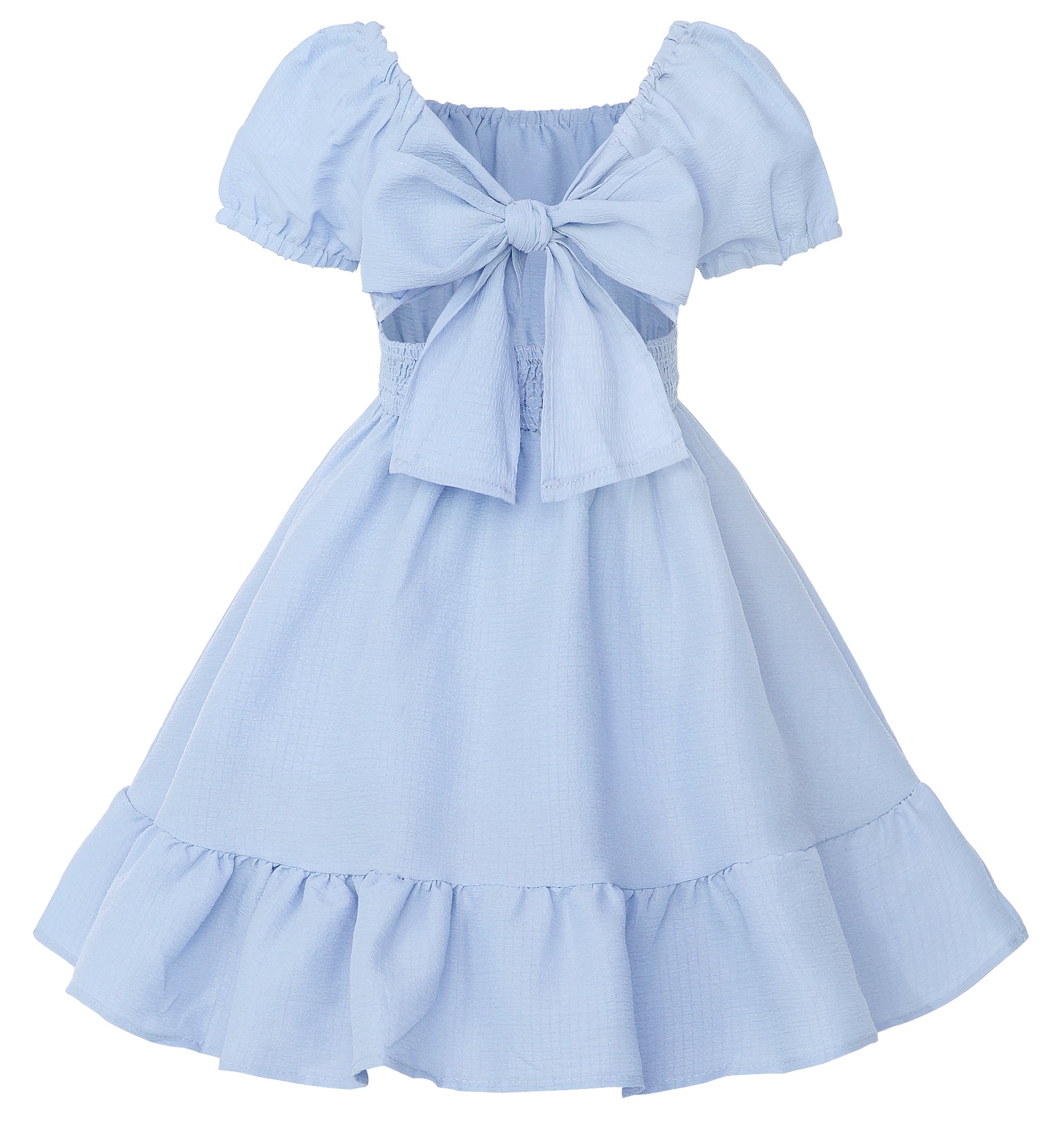Girls Summer Casual Dress Bow Tie Back Dresses Off Shoulder Ruffled Hem